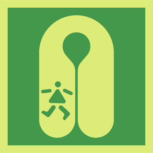 This photoluminescent liferaft symbol sign provides clear identification of liferaft locations on board vessels and offshore platforms. Manufactured from high-quality glow-in-the-dark material, the sign charges under normal lighting conditions and becomes highly visible during low-light or emergency situations.